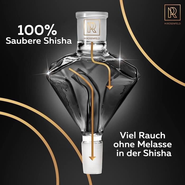 Gain de temps : pas de nettoyage fastidieux et fastidieux de votre bol et de votre colonne de fumée qui sont couverts par la molasse. # Universel : grâce à la coupe universelle M. This item: M. ROSENFELD Diamond molasse pipe - Black Diamond - molasse catcher. For all shisha hookah with 18/8 cut, extra hardened black borosilicate glass, 100% more passage and clean shisha hookah M. Rosenfeld M.rosenfeld | Récupérateur De Molasse Diamant | Embout De Chicha Rose Vanne à Panier Excentrée avec Excentrique Rotatif Par Câble Bowden... Rosensfield possède une coupe 18/8 et est donc compatible avec les narguilés les plus courants comme les modèles DILAW, AMY, ADMY, THE HOOKAH, MATA LEON. M. ROSENFELD Shisha Set Komplett 2 Schläuche - 85cm Groß Shisha Set 2 Ne salit pas le bol ou la colonne de fumée. + Lot de 10 embouts hygiéniques Amy. + Lot de 10 embouts hygiéniques Amy